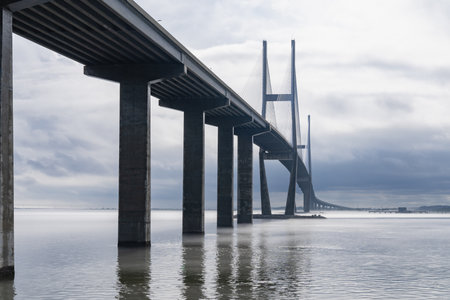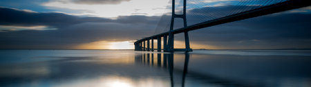 Panoramic view of Vasco da Gama bridge in Lisbon, Portugal