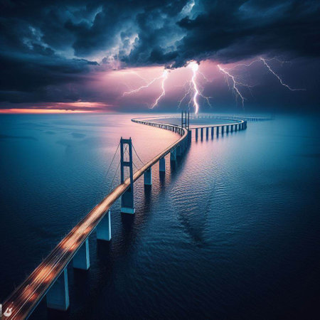 The Majestic Great Belt Bridge: A Captivating Photo of the Iconic Danish Structure Crossing the Nort
