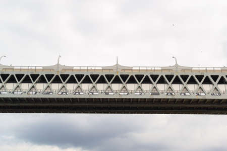Part of the big motorway, Controlled-access highway bridge against a background of cloudy sky. The road passing in the air. Saint Petersburg, Europe