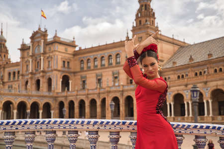 Spanish woman dancing flamenco in Seville, Andalusia, Spain.