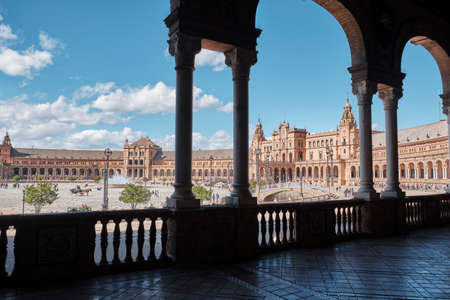 view of Seville's main square Plaza de Espana from arch covered walkway Spain - Andalusia