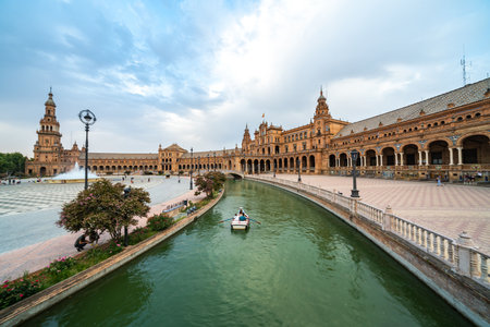 Scenic View of Plaza de Espaa, Seville with Canal and Boating