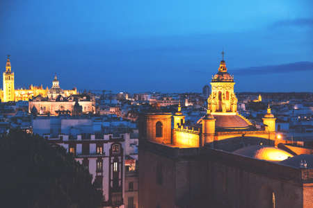 Seville old town cityscape at sunset, Andalusia region, Spain.