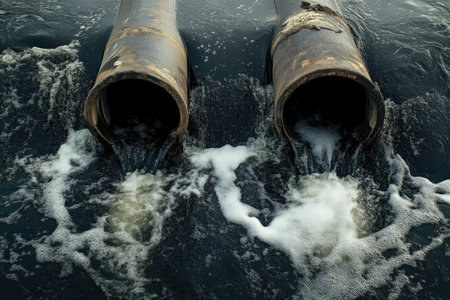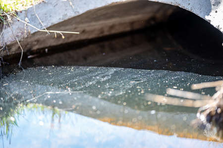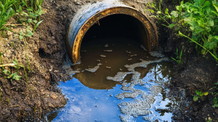 Visual representation of sewage contamination polluted water flowing from a pipe with impurities