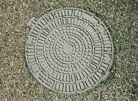 Sewer manhole in the city as a background