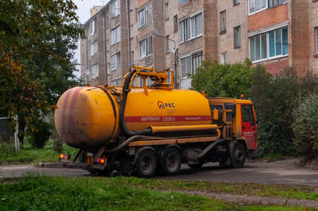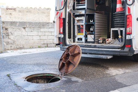 Drain cleaning, sewage truck pumping out contaminated water