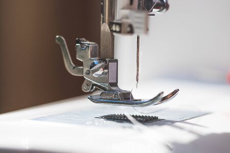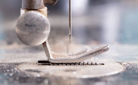 Close-up of the sewing machine and sewing needle studio. macro