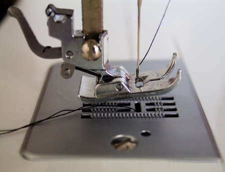 Closeup of a domestic sewing machine needle and thread