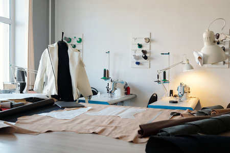 inside empty sewing room in tailor shop professional photography