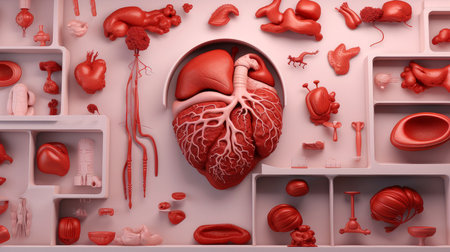 This visualization depicts the heart and kidney organs with a digital overlay, emphasizing their structure and function.