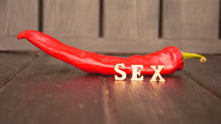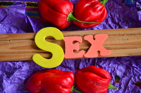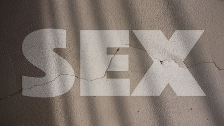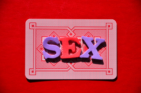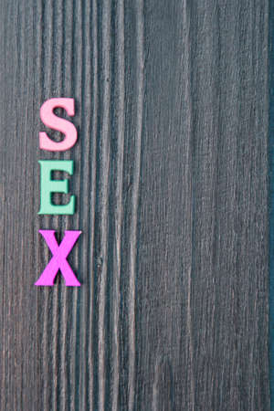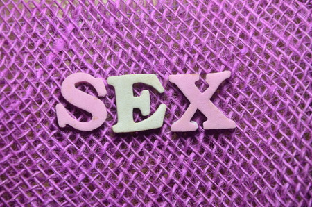 Word - sex, laid out in wooden letters on an old sacking