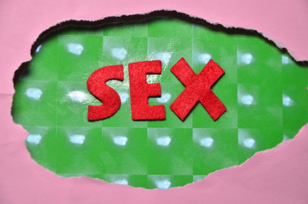 Word SEX on color background