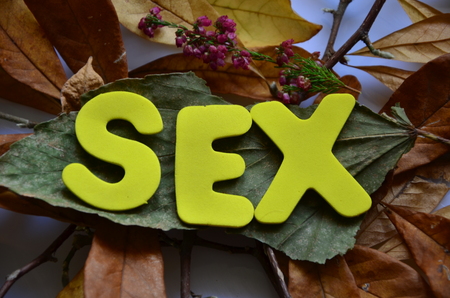 Word SEX spelled with green plastic letters