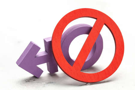 No sex sign on red brickwall surface as a concept of homophobia or abstinence
