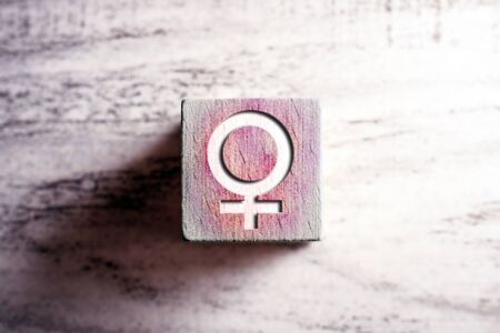 Pink Colored Gender Icon For Female On Wooden Block On A Table
