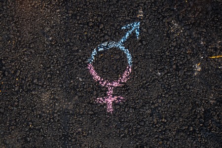 Legs with gender symbol on asphalt, gender concept