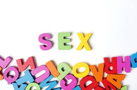 Isolated ' SEX ' Colorful Wooden Letters and Word, Learning English Word and Meaning