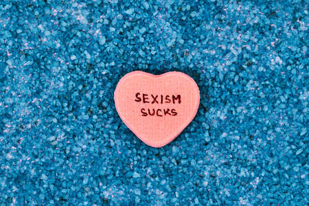 The word sexism in wooden letters on a pink background