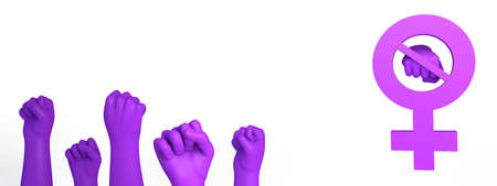 Banner with female symbol, crossed out fist and hands with fists. International Day for the Elimination of Violence against Women. Feminism. 3d illustration. International Women's Day. March 8.