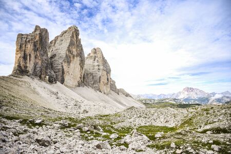 Landscape of The Three Peaks of Lavaredo (Tre Cime di Lavaredo), one of the most popular attraction in the Dolomites, Italy