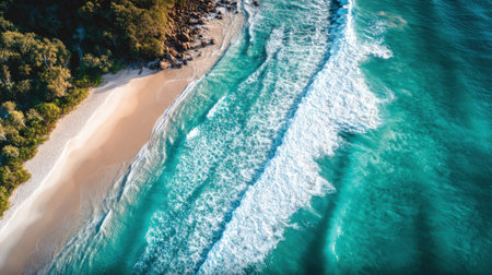 Generative AI : Aerial view of waves breaking on Grande Anse beach Seychelles