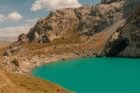 View on Kol-suu lake in Naryn Region Kyrgzstan. High quality photo