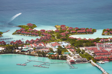 View from Mount Copolia to the artificial Eden Island in Mahe, Seychelles