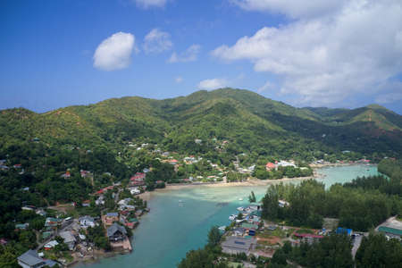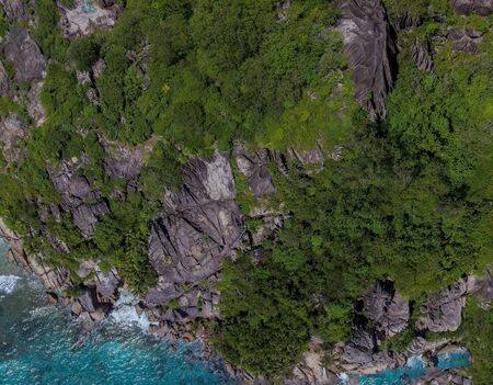 Aerial view of beautiful island at Seychelles in the Indian Ocean.Top view from drone