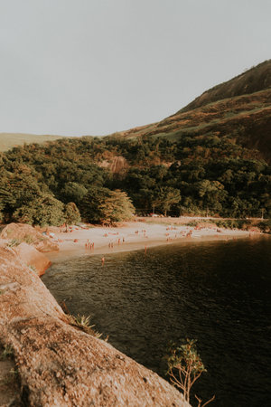 Experience the tranquility of a stunning beach with vibrant turquoise waters soft white sands and lush greenery. A perfect getaway for relaxation and serenity.