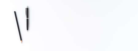 Office desktop with black pen and pencil isolated on white background. Panoramic banner