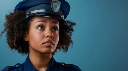Close up image of a police officer in uniform, symbolizing law enforcement, security, and public service.