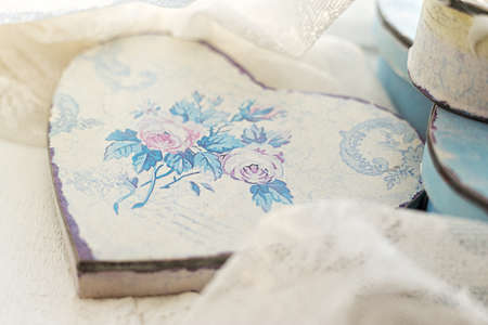 Box in a heart shape, decorated in decoupage technique Provencal style, box for gift or candy