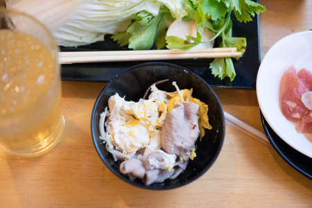 Sukiyaki of japanese food on a wooden table