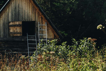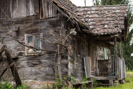 Croatia, April 20,2022 : Very old traditional wooden house.