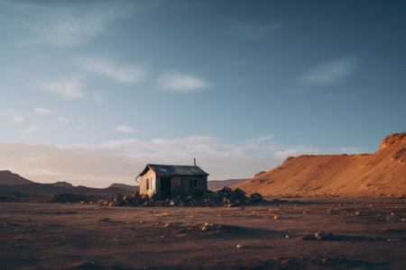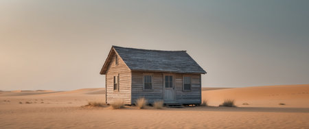 AI Generated. Empty wooden cabin sitting in the middle of a vast desert