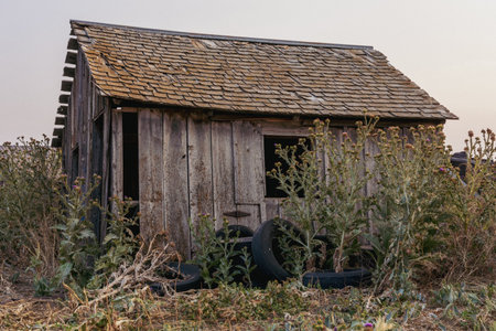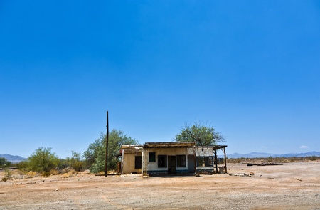 Old Ghost Town Cabin in the Nevada Desert. Image has a vintage color tone.