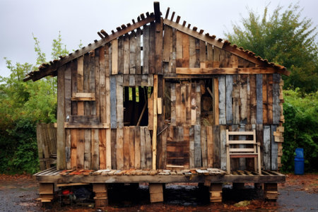 Simple Shack wooden old pallets example roof. Architecture hovel roof shed home. Generate Ai
