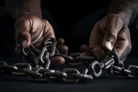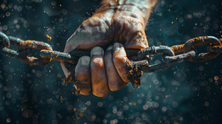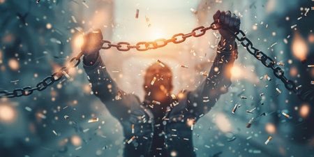 Powerful image of hands breaking free from chains, symbolizing liberation and resilience.