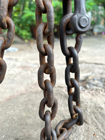 Rusty Metallic Chain Representing Strength and Security, Linking Generations Through Time