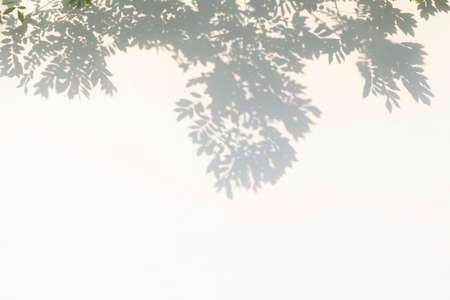 Light shadow of Leaves and tree branch background. Natural leaves tree branch shadows and sunlight dappled on white concrete wall texture for background wallpaper and any design