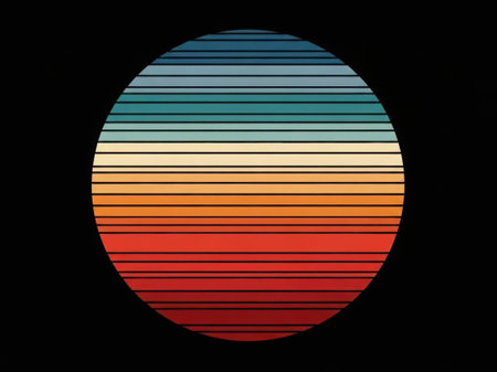 A circular gradient image featuring horizontal stripes transitioning from blue to red against a black background.