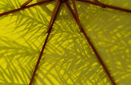 Parasol on a sandy beach along the sea at sunrise. Travel vacations concept.