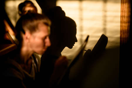 silhouettes of two young friends of the guys.