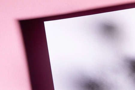 Paper background white, architectural drawing, pink blurred background. abstract shadow background. For design templates, as a canvas for text, advertising.