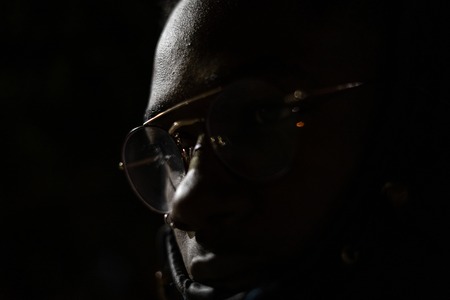 Portrait of a african american man wearing a modern glasses. Close-up of a handsome black man