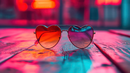 Close-up of stylish sunglasses with colorful reflection against a vibrant background, showcasing a trendy and fashionable accessory.