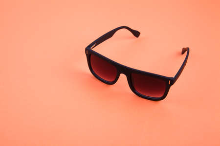 Sunglasses on color background. Place for text. Template for design