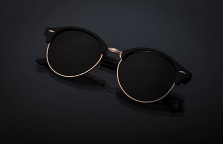 Fashionable sunglasses with round lenses on a dark concrete background