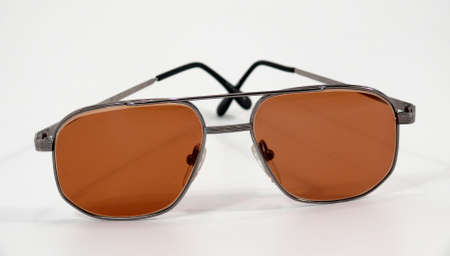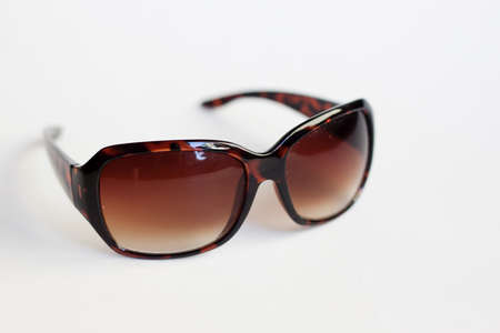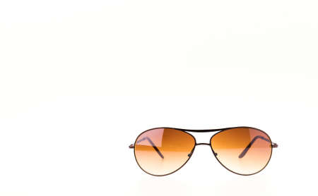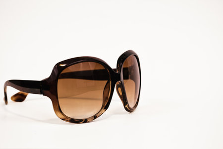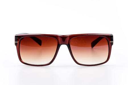 Close up of brown sunglasses isolated on white background