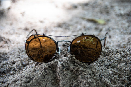 Sunglasses in the sand on the beach